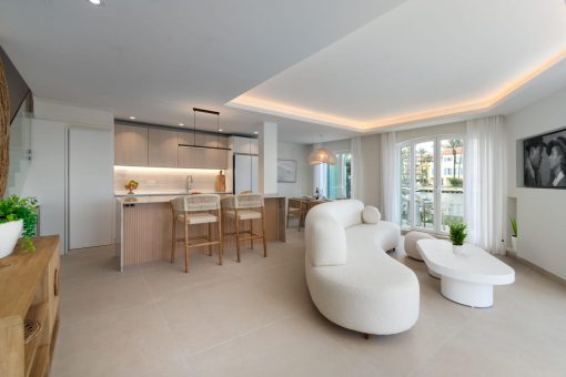 For ground-floor apartments, for example, the proximity to a garden or pool should be embraced, creating outdoor spaces that blend seamlessly with the interior. Sea views or golf course vistas should always be the focal point of the decoration.