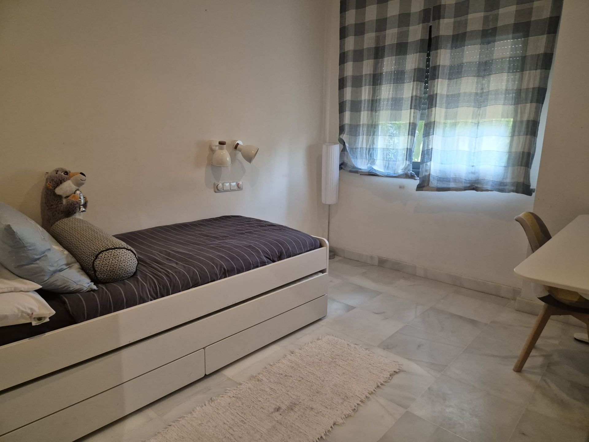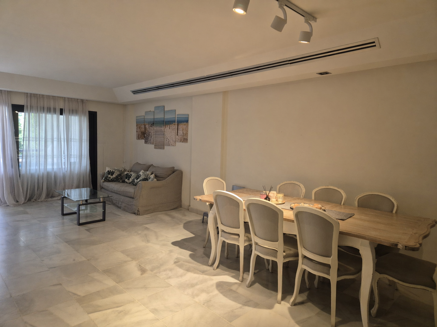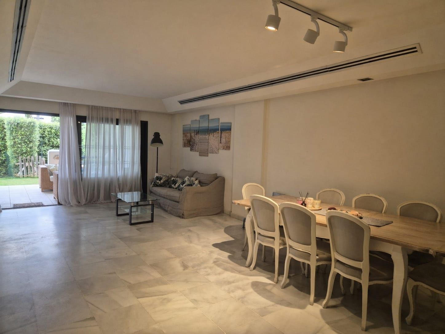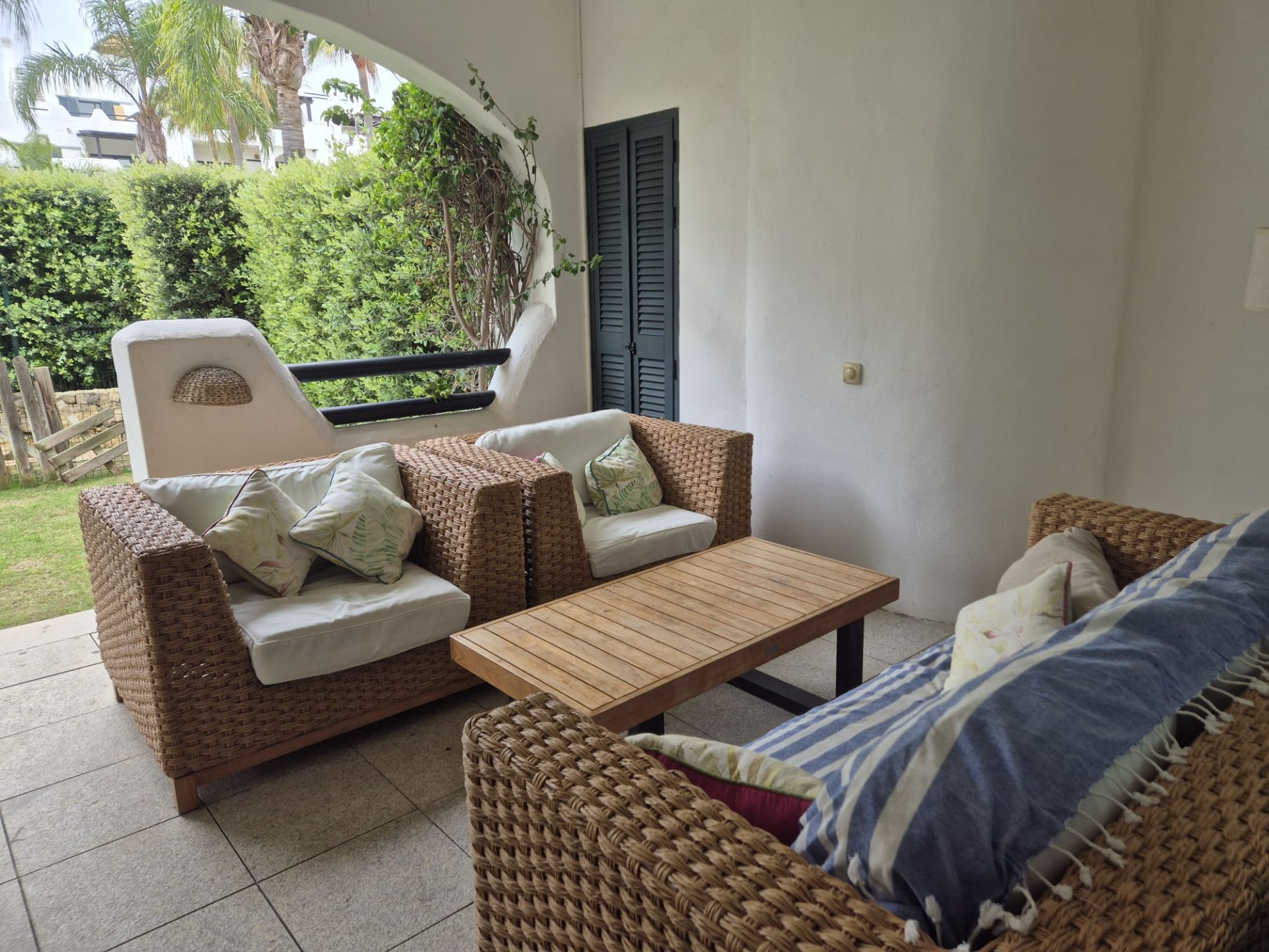 These 4 bedrooms, 3 bathrooms ground floor apartment is located on the Polo compound. The apartment consists of the living room - dining room area, 4 bedrooms, 3 bathrooms, fully equipped kitchen with all the appliances, and a terrace opening to a garden and near the pool. There is air conditioning throughout the apartment, individual units in the bedrooms.
