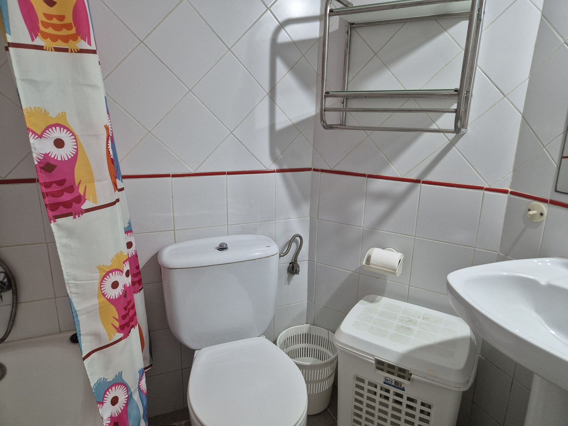 There are 3 bedrooms and 2 bathrooms on upper floor and 1 bedroom, 1 bathroom on the lower floor plus a maid's room with full bathroom next to the kitchen.