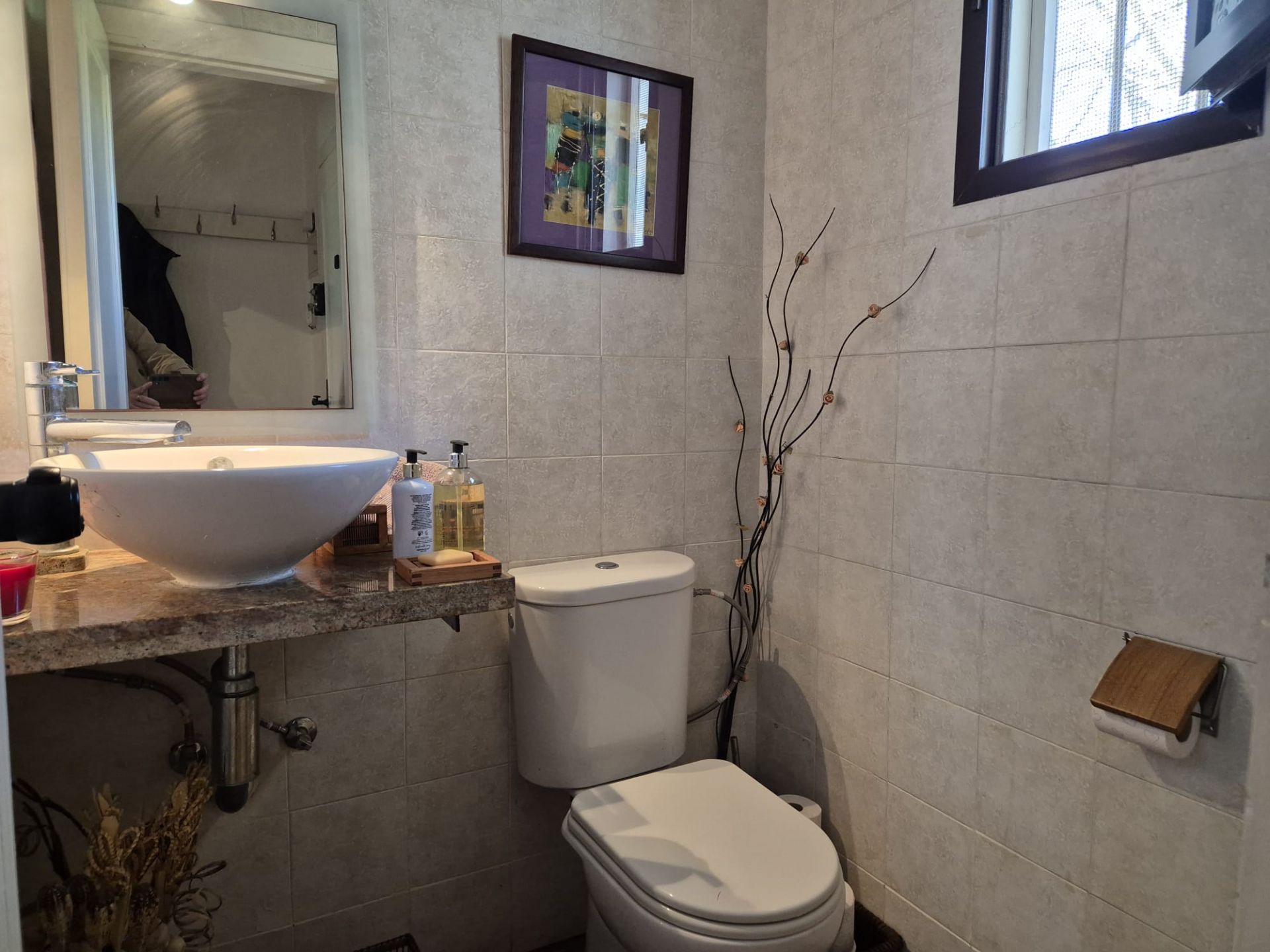 On the top floor there are 4 bedrooms with two bathrooms. The Master bedroom has Parquet flooring and en-suite bathroom (shower only) has king size bed. The other 3 bedrooms share a bathroom with tub and shower, 2 bedrooms with twin beds, 1 bedroom with a double bed. House has a guest bathroom on the ground floor.