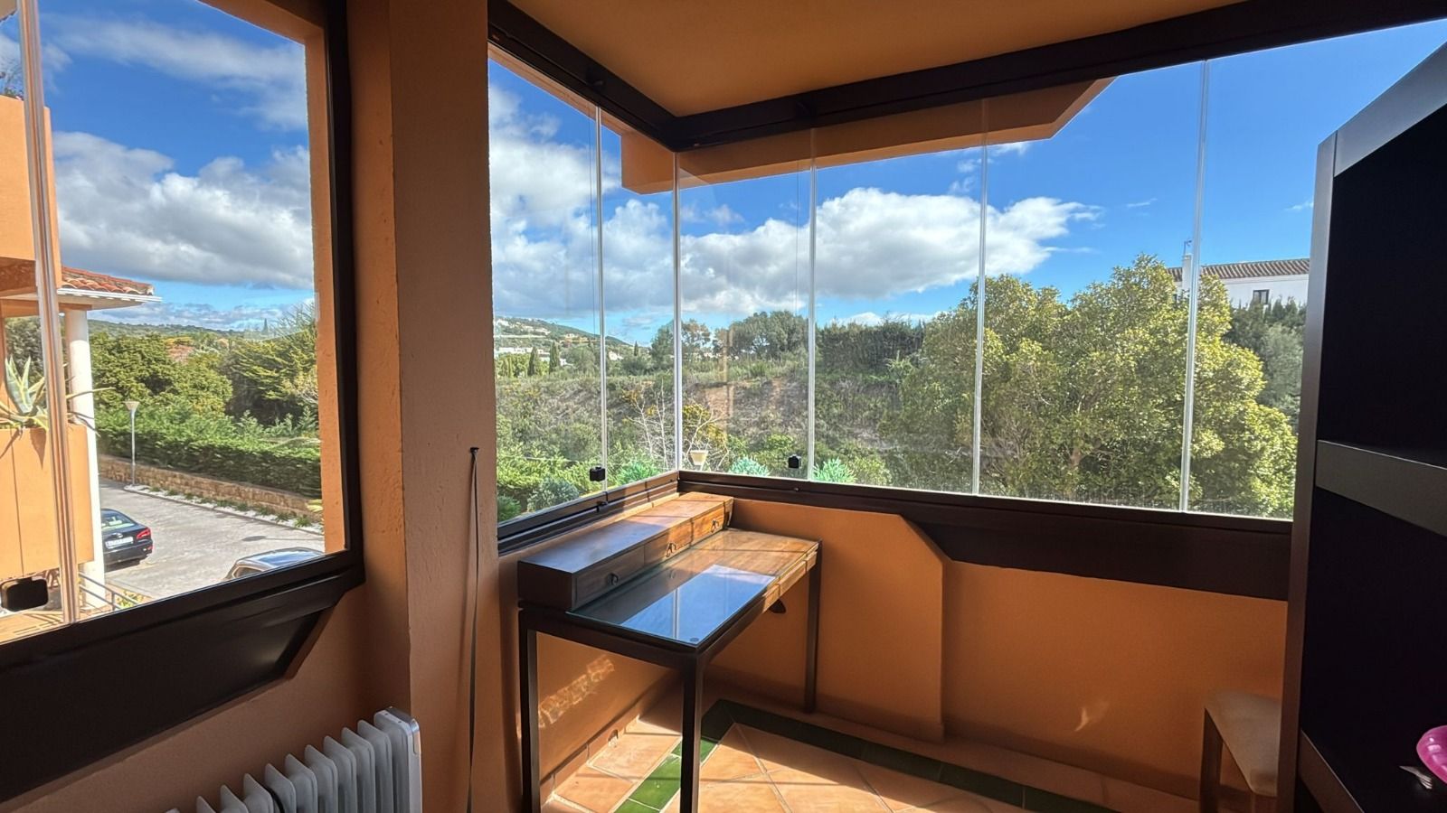 This property is located in the very desirable Los Gazules of Sotogrande near the Sotogrande School, Golf driving range, Hotel Almenara and 5 Golf Courses. This is a luxury apartment consisting of the living room, kitchen, 2 bedrooms, two glass-enclosed rooms for study and work, and a large terrace with views. 2 en-suit bathrooms and a toilet. The kitchen is fully equipped and contains everything one would expect from a luxury apartment, including a seating area.