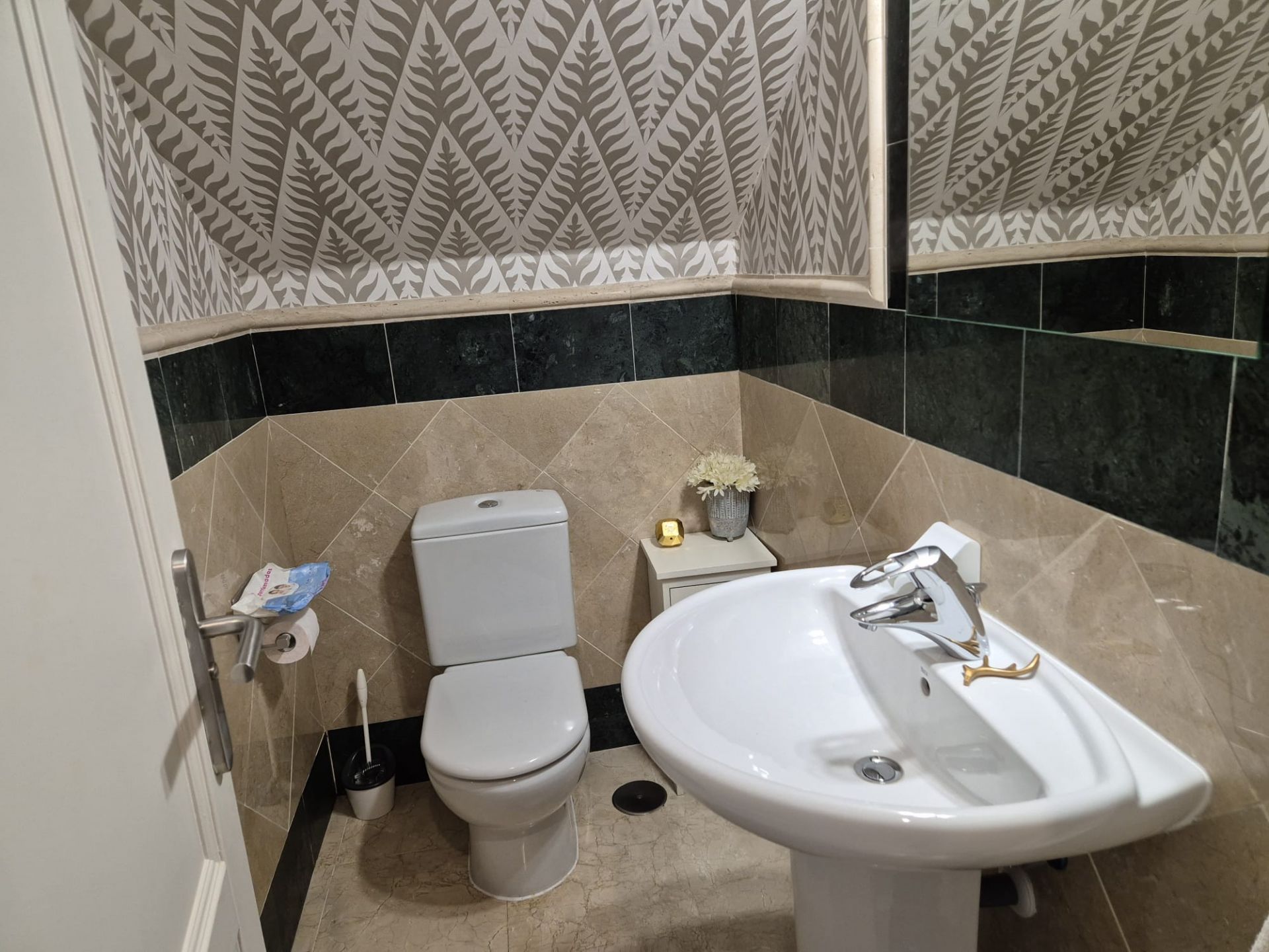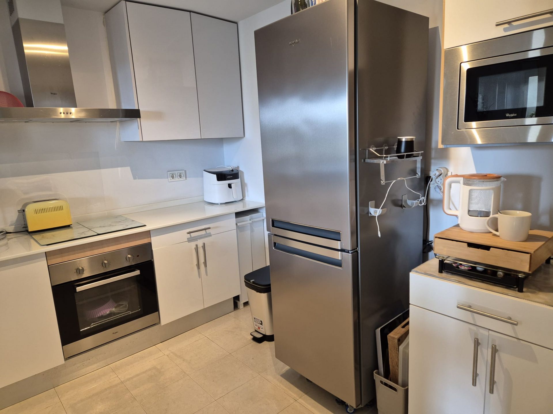 The kitchen is fully equipped, including dishwasher, washing machine, oven and microwave.