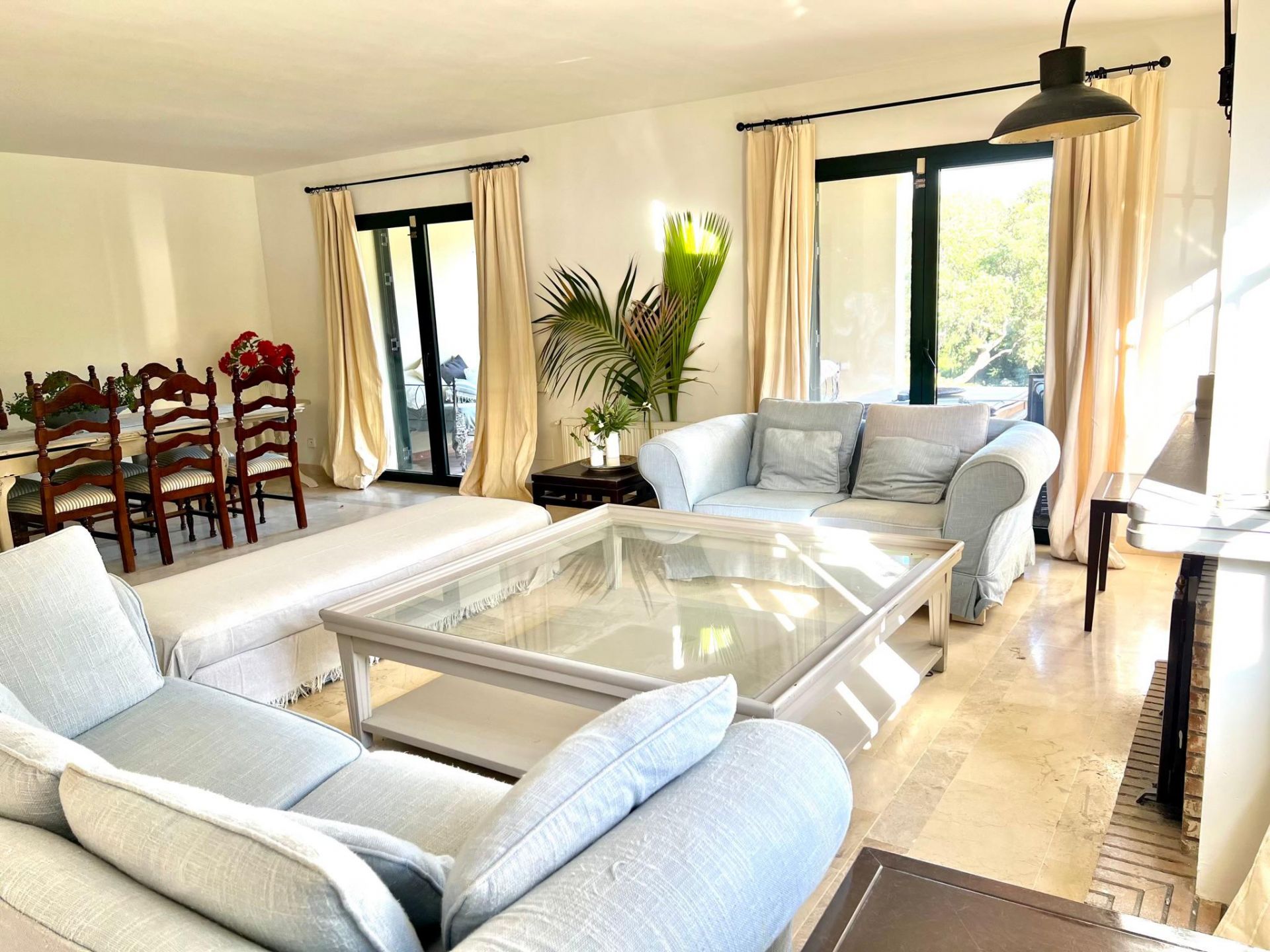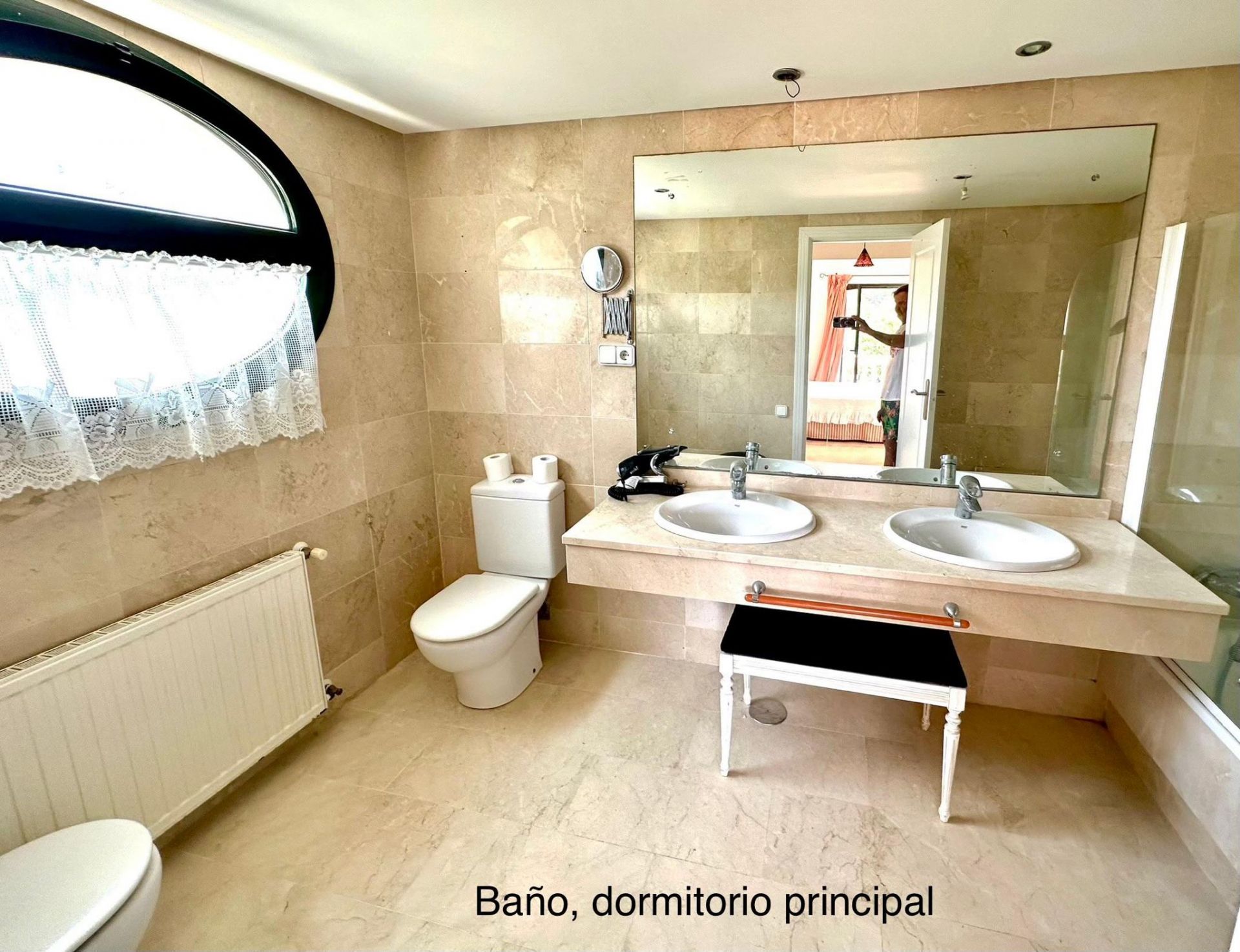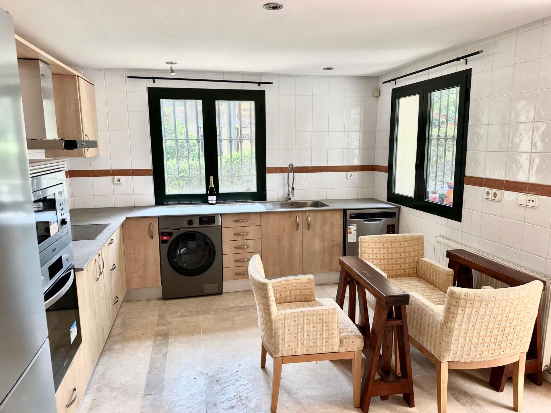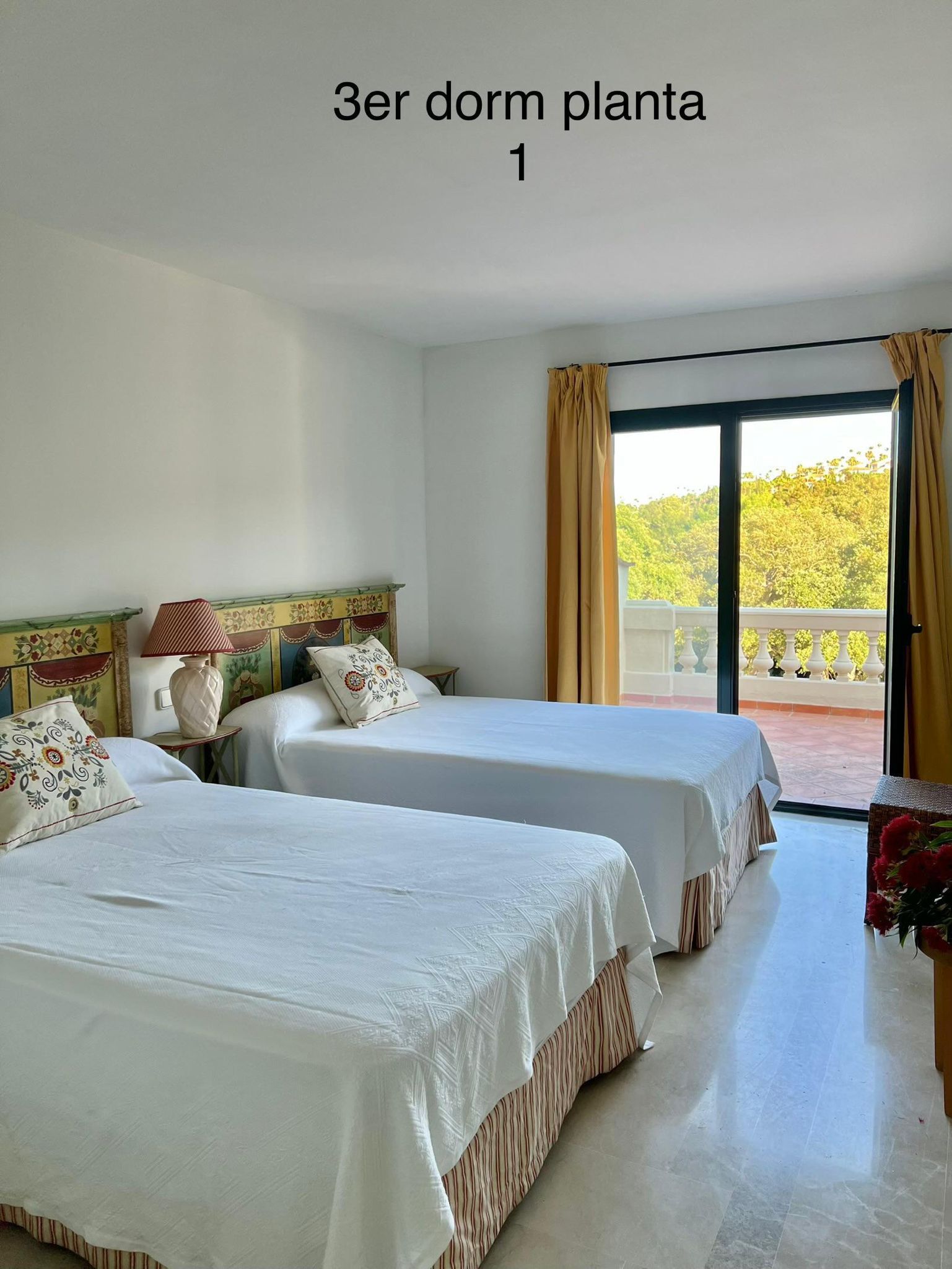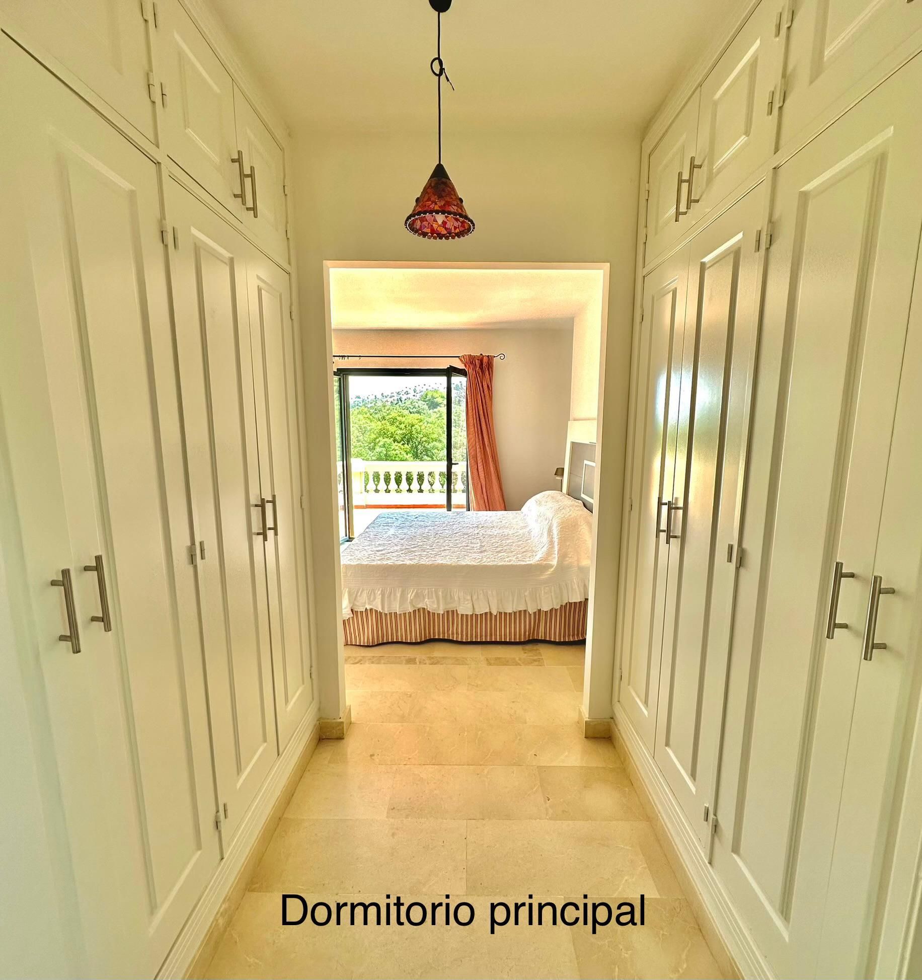 This charming townhouse has open views to the countryside, 5 bedrooms and 4 bathrooms. Entrance hall with a large open plan dining and living room. The living room is bright and fresh and it has a south facing patio door leading to a covered terrace. The terrace has lovely views to the golf course. A good size fully fitted kitchen with separate storeroom and laundry room. The panoramic views over Sotogolf. The basement has 3 additional bedrooms.