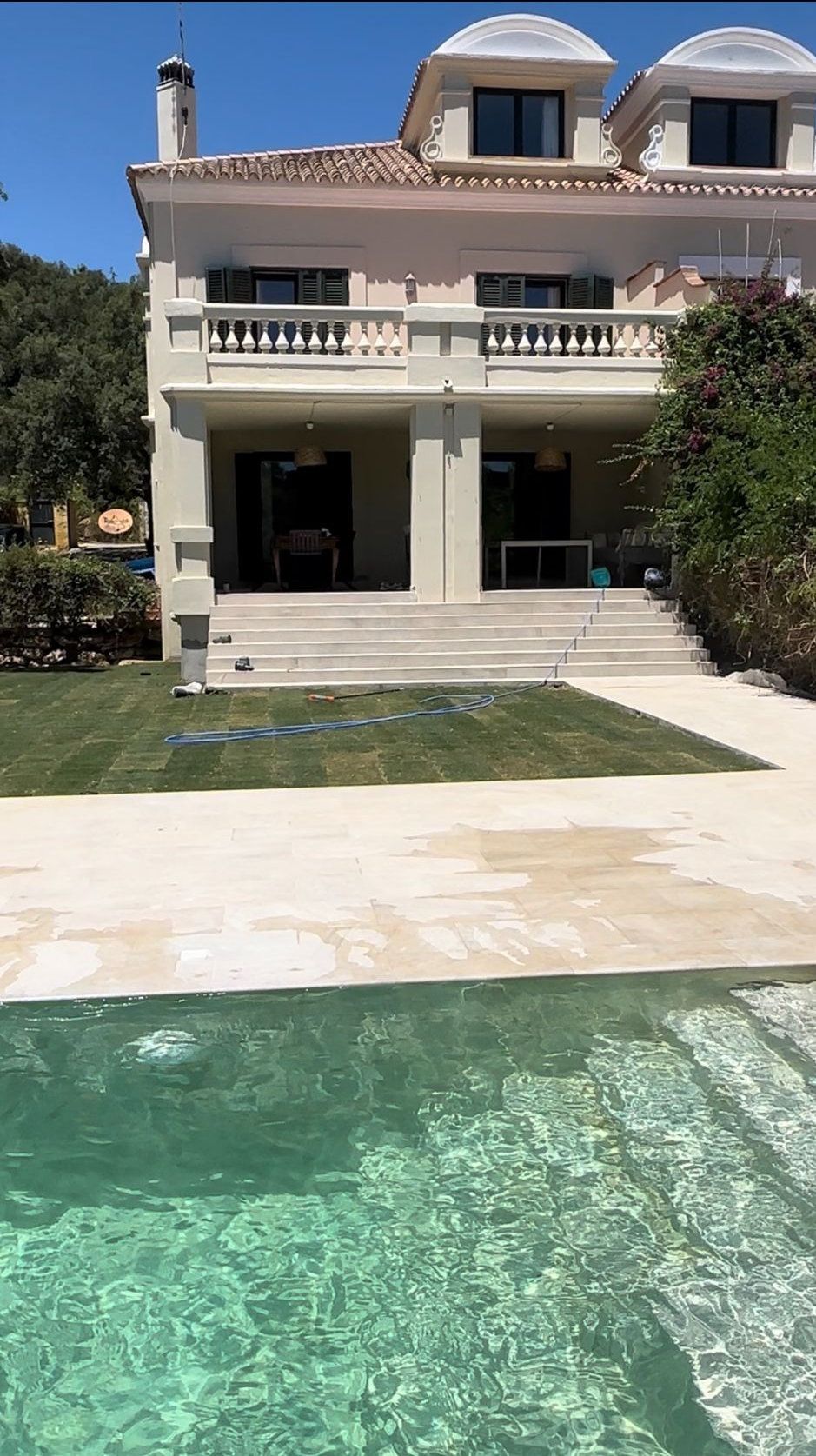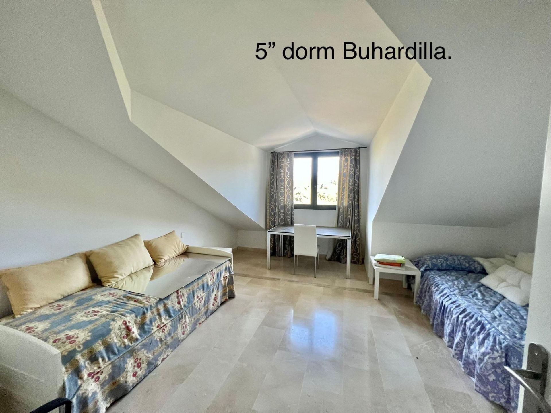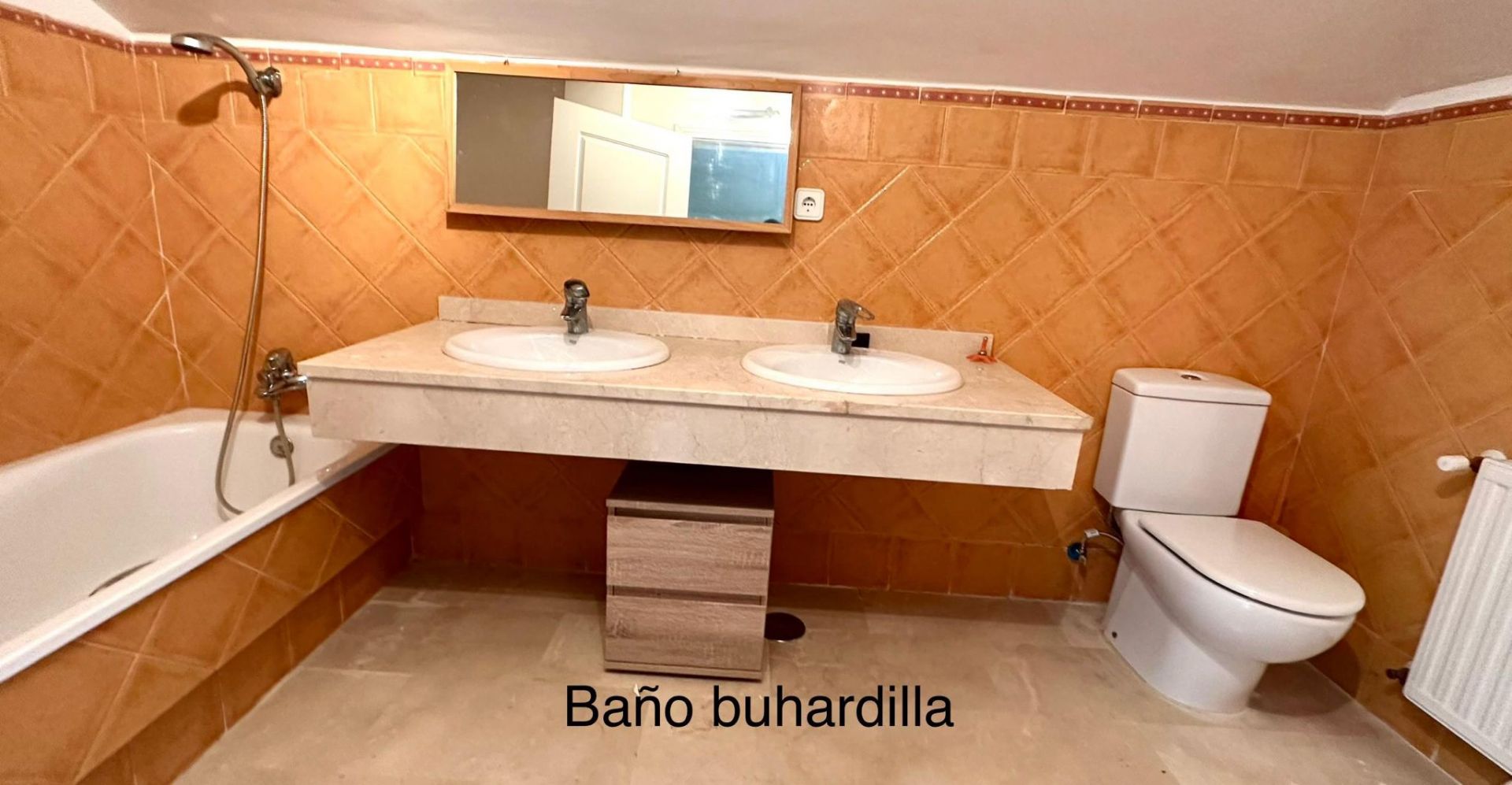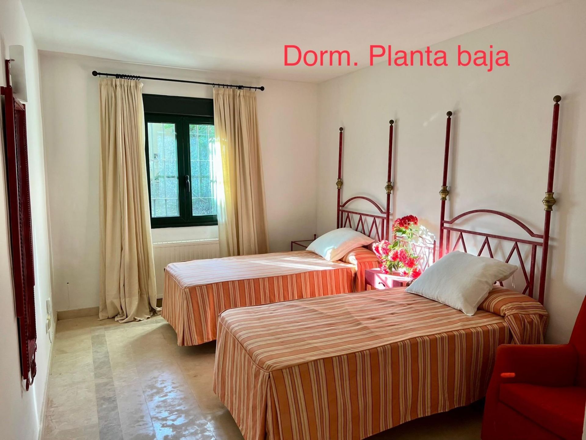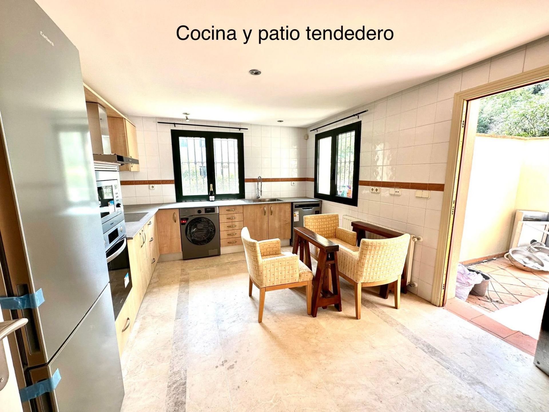 This charming townhouse has open views to the countryside, 5 bedrooms and 4 bathrooms. Entrance hall with a large open plan dining and living room. The living room is bright and fresh and it has a south facing patio door leading to a covered terrace. The terrace has lovely views to the golf course. A good size fully fitted kitchen with separate storeroom and laundry room. The panoramic views over Sotogolf. The basement has 3 additional bedrooms.