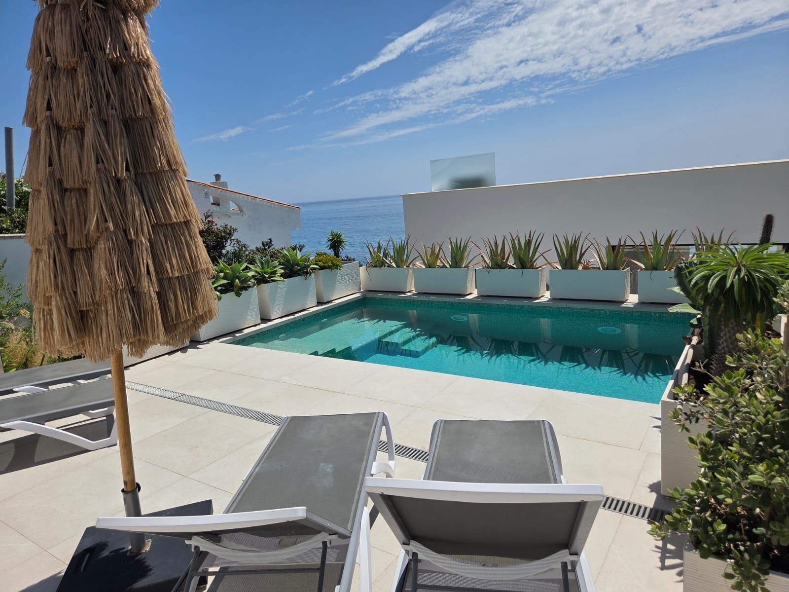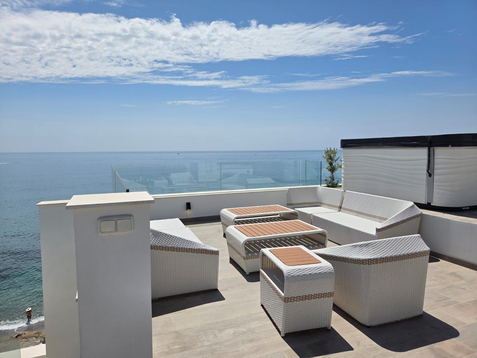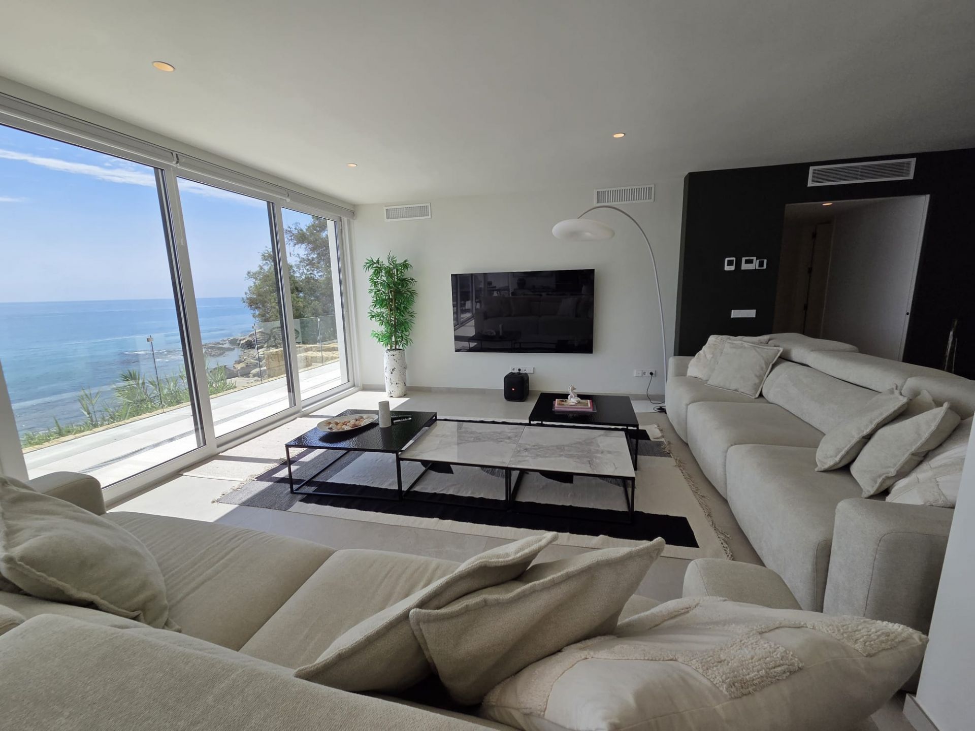 This modern beach house has uninterrupted sea views from every floor of Mediterranean Sea from every floor.