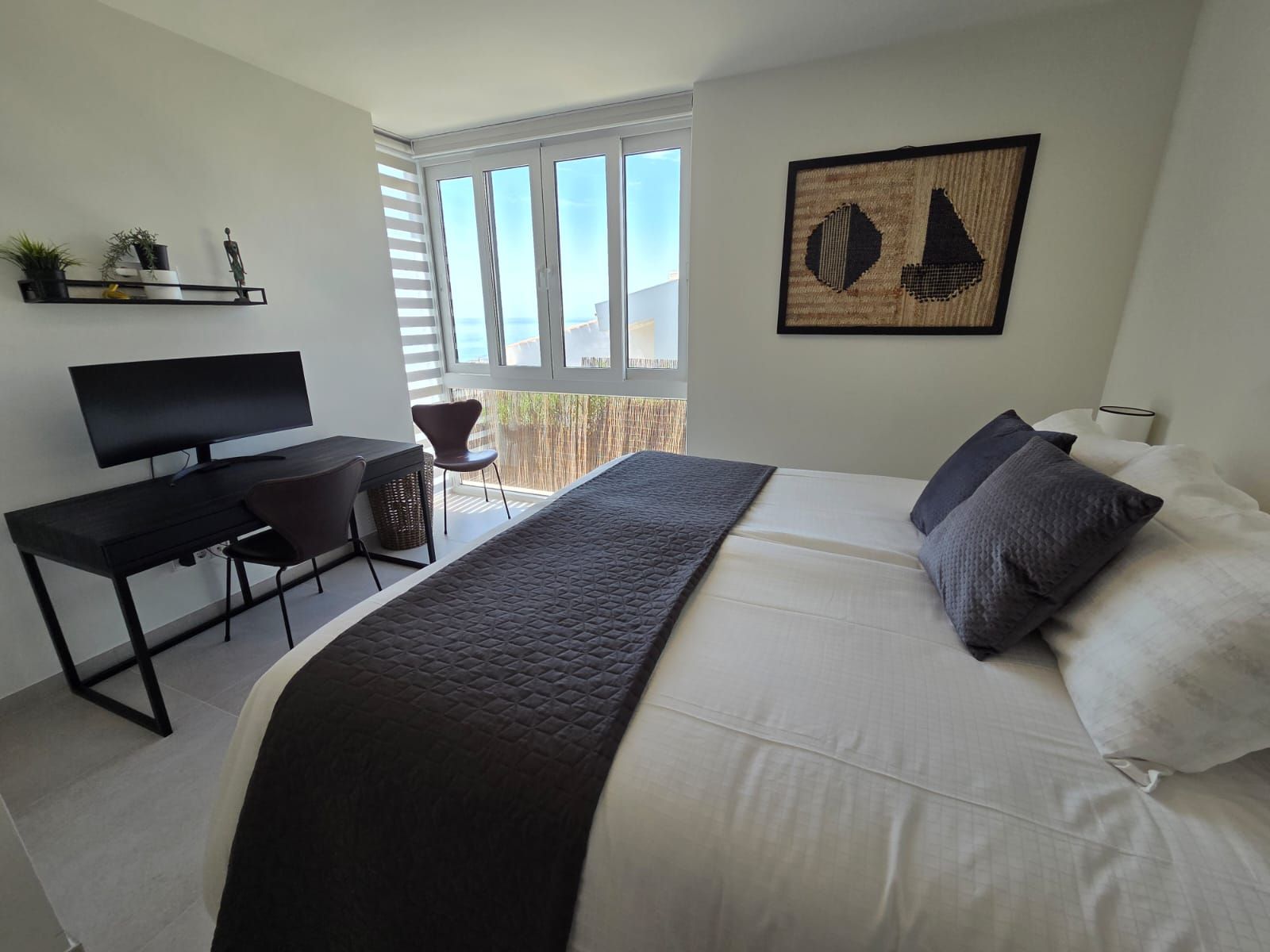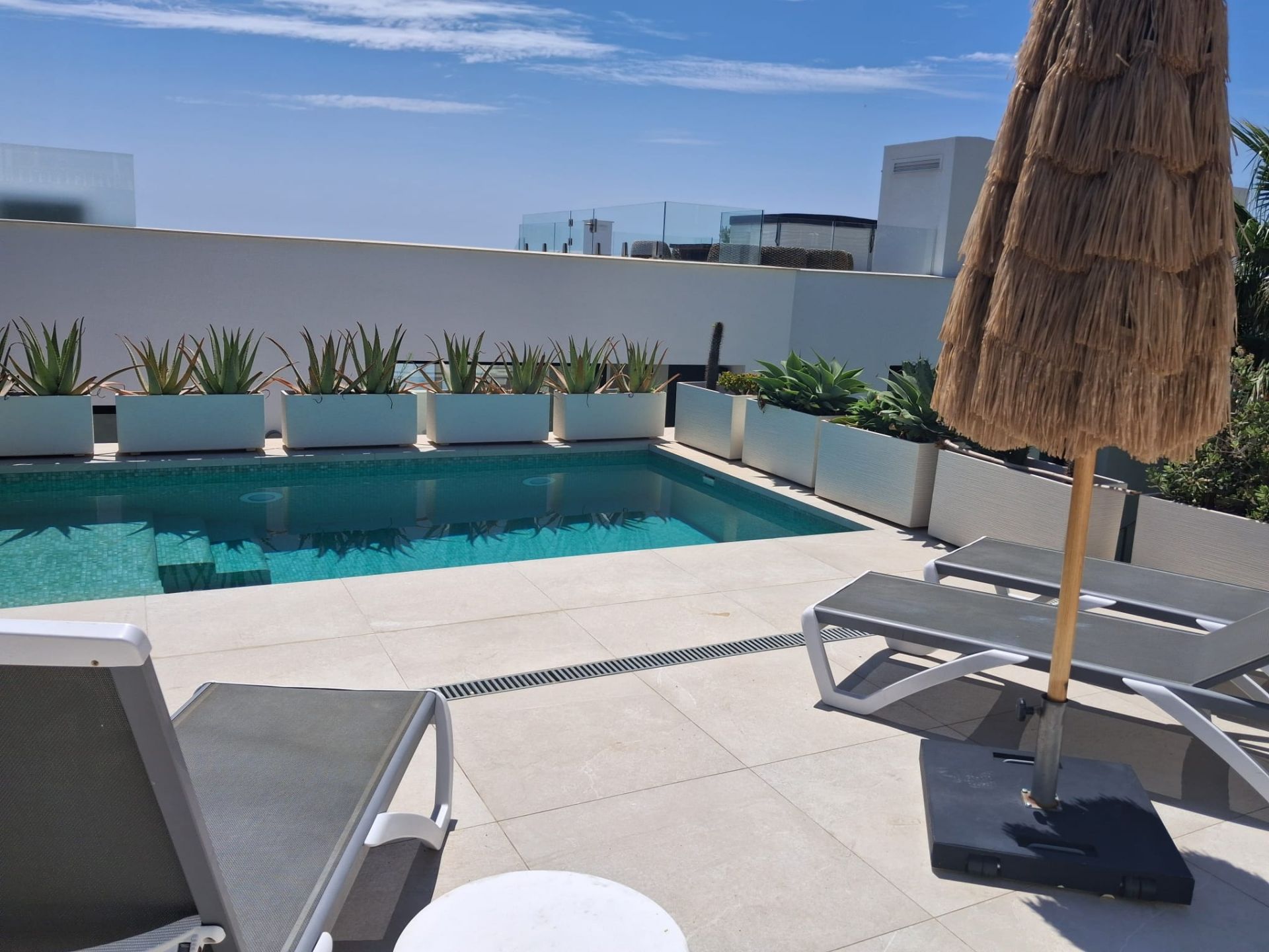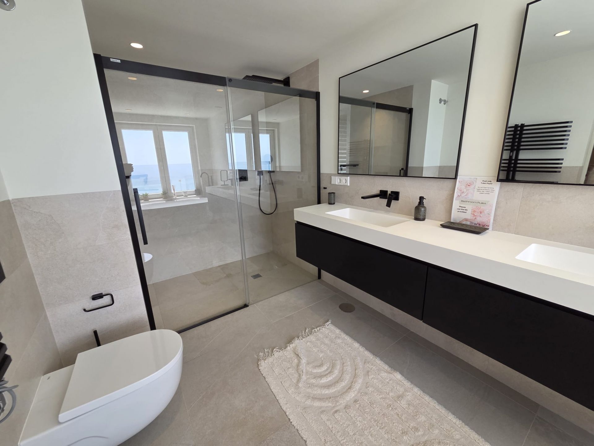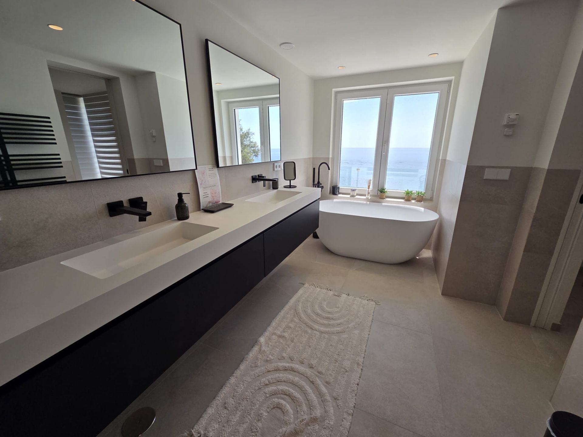 This modern beach house has uninterrupted sea views from every floor of Mediterranean Sea from every floor.